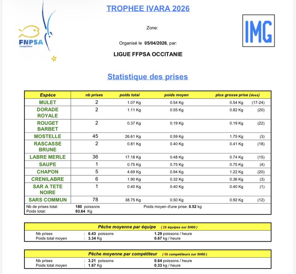 La fin de compétition approchait et un brouillard a alors enveloppé la zone, ce qui changeait l’ambiance et les repères en mer. Peu de temps après nous sortions de l’eau avec notre pêche de dix poissons (cinq sars, trois mostelles et deux labres). Cela nous a permis de nous classer 11ème – sur 30 équipes – sur ce trophée Ivara ! »