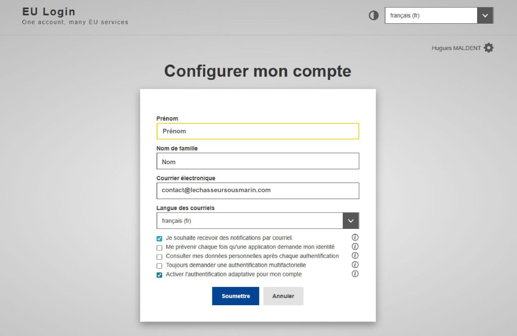 CrĂ©ation d’un identifiant sĂ©curisĂ© [Eu login] via un PC :