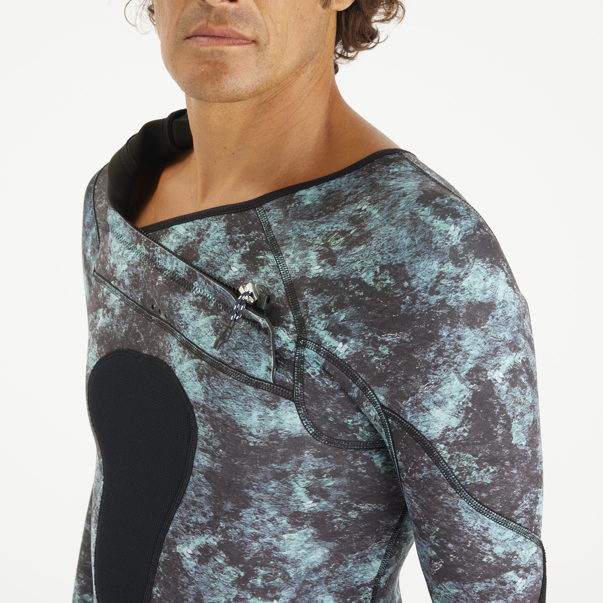 - Ce nĂ©oprène Ă©lastique permet une grande libertĂ© de mouvements et le tour du cou, bien ajustĂ©, protège des entrĂ©es d’eau