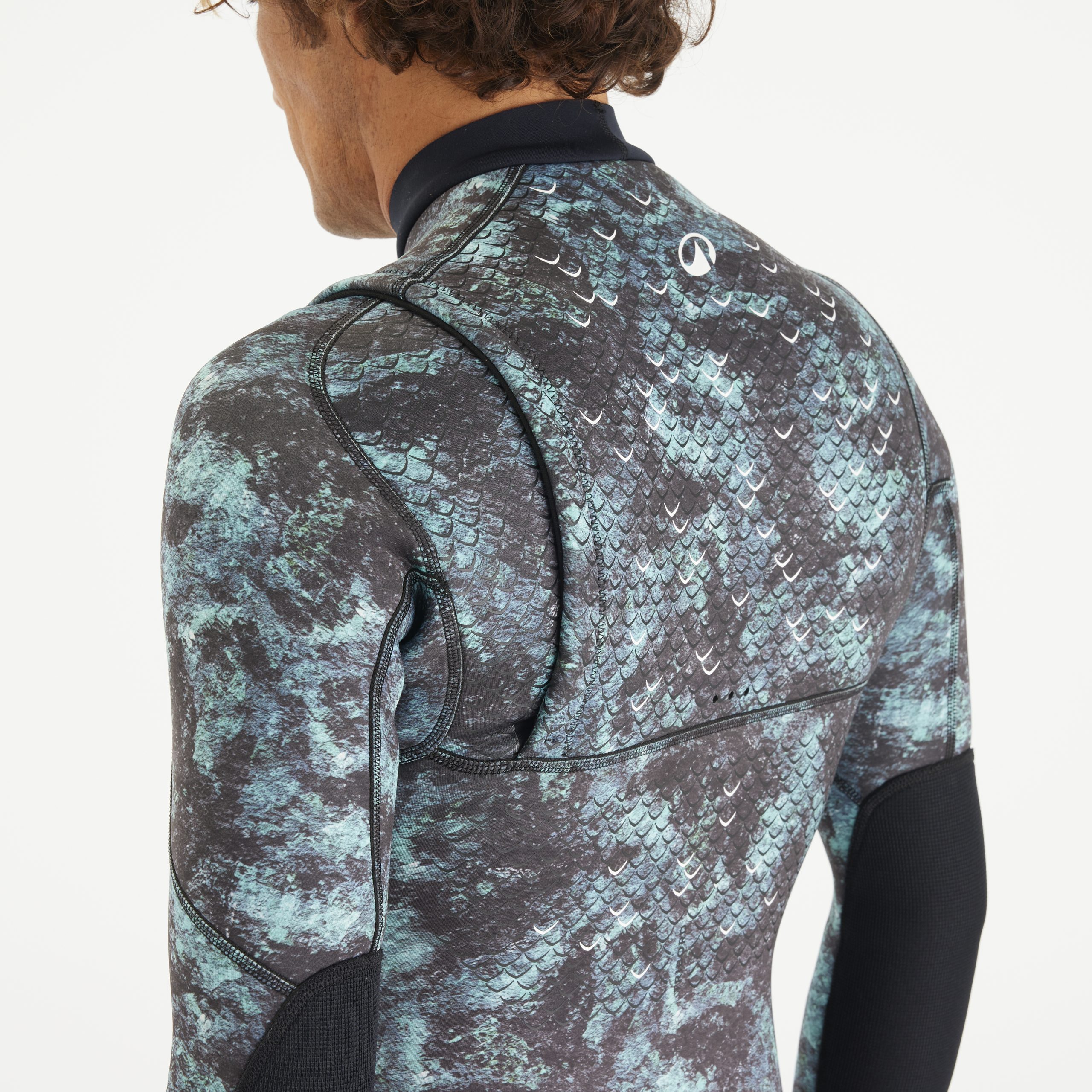 - A noter les dessins d’Ă©cailles de poisson sur le dos du shorty !