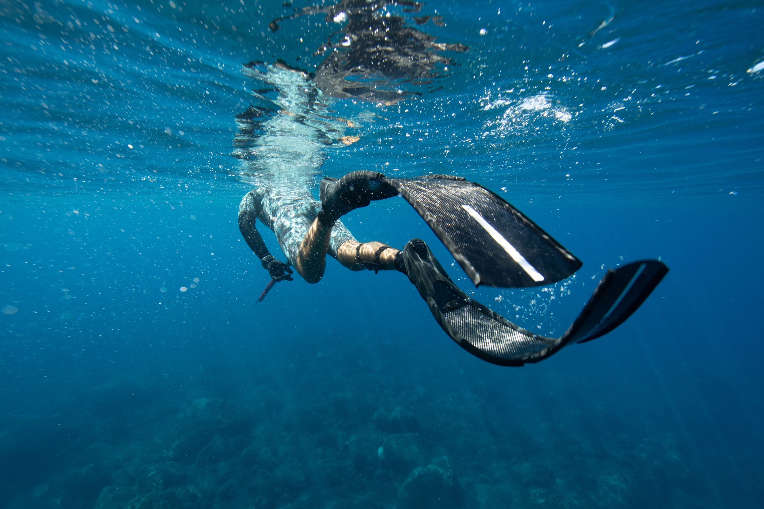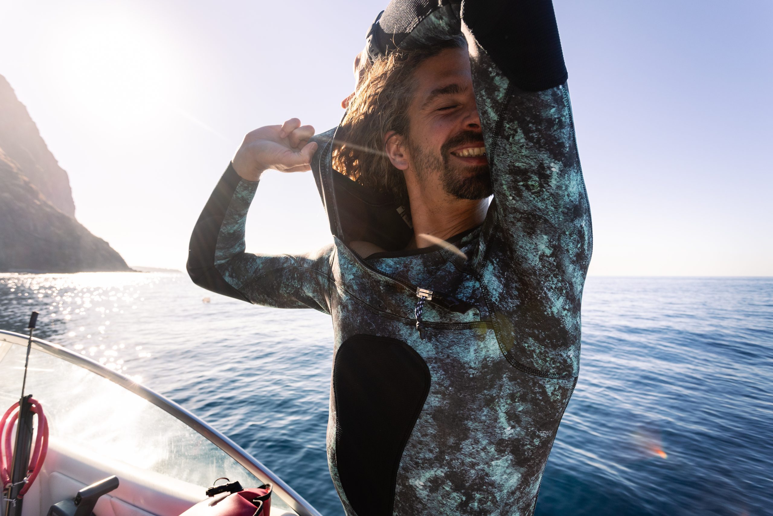 En session de chasse, du fait de la faible Ă©paisseur de nĂ©oprène, de l’absence de cagoule et du bas taillĂ© au-dessus du genou, la flottabilitĂ© – habillĂ© de cette combinaison – sera peu importante et le recours au plombage pour s’immerger considĂ©rablement rĂ©duit, ce qui est très agrĂ©able !