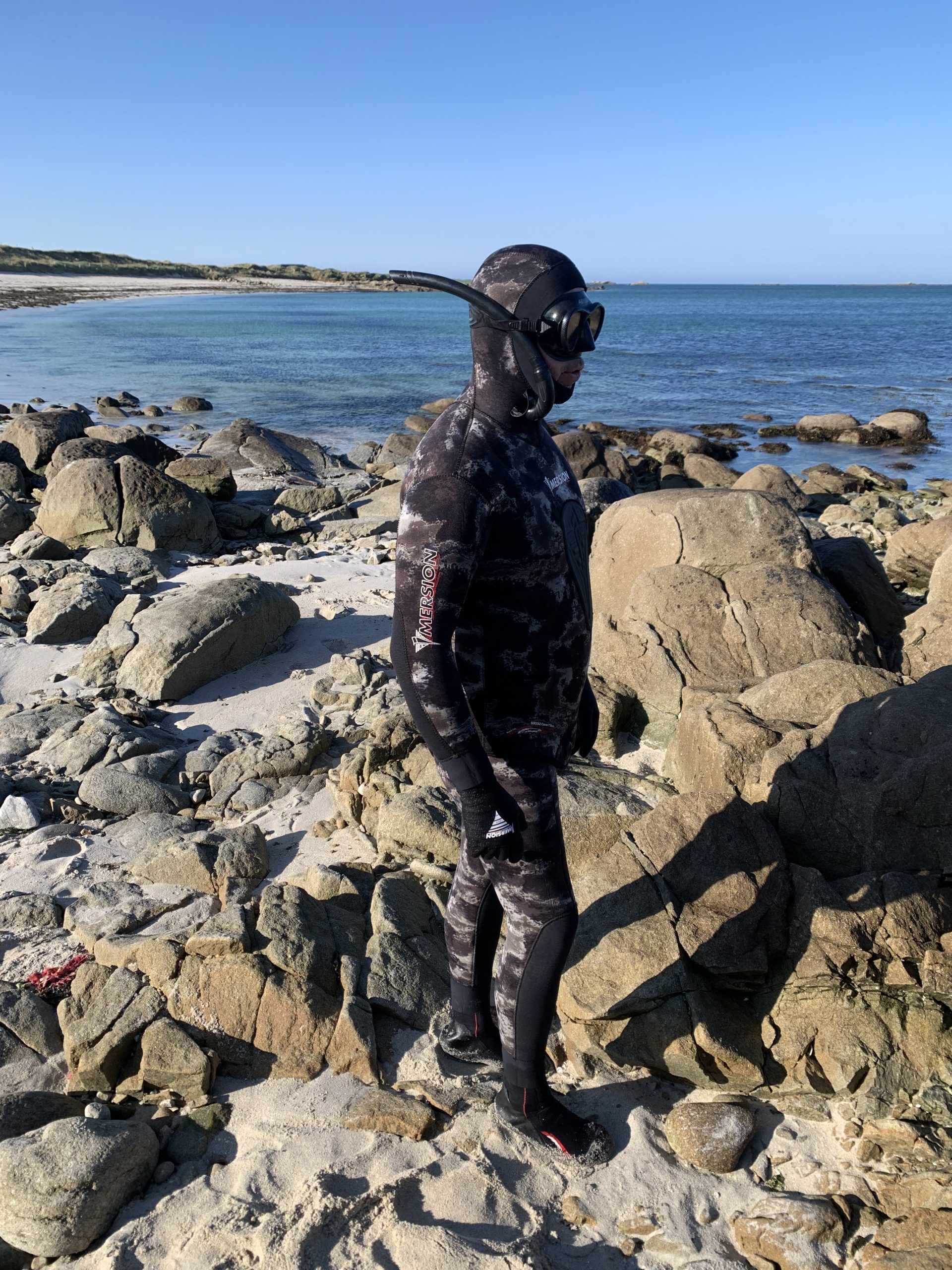 Cette combinaison existe dans un coloris CAMO BLACK qui permet un bon camouflage sur les fonds marins de Manche et d’Atlantique mais est disponible aussi en 100% BLACK !